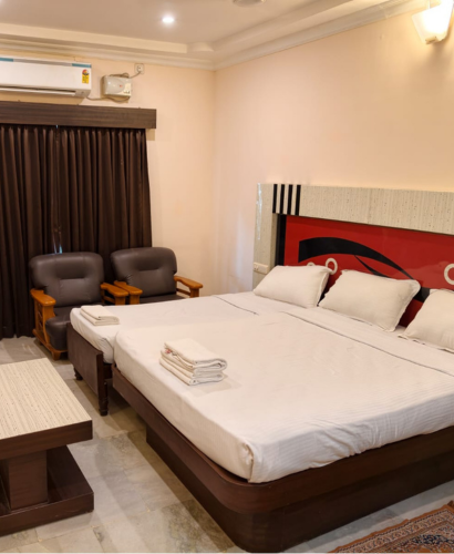 Our Double Deluxe A/C Room offers enhanced comfort with spacious interiors and elegant furnishings. Designed for relaxation and convenience, the room features comfortable bedding, air conditioning, and modern amenities to ensure a pleasant stay.